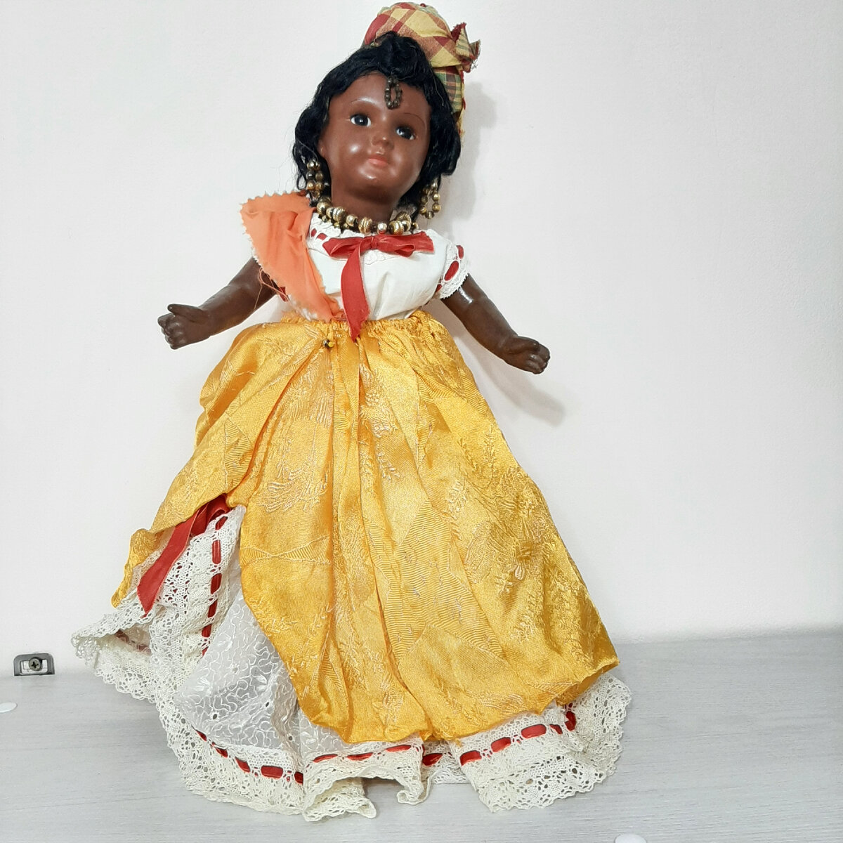 Прикупила себе антикварную куколку UNIS France. Очень уж мне хотелось в коллекцию темненькую куколку. Выбор был сделан в пользу небольшой куколки UNIS France. Во первых кукла была в более-менее нормальном состоянии, во вторых она стоила не так дорого, хотя доставка сейчас выходит дороже самой куклы. Учитывая, что продавцы ещё увеличивают сумму почтовых расходов, и иногда берут разницу с почтовой доставки себе. Кукла одета в национальный костюм французской колонии Мартиники. Мартиника - остров в Карибском море. Остров был открыт в 1502 году экспедицией Христофора Колумба. В то время Мартинику населяли индейцы карибы. Испанцы не нашли на острове золота и потому не стали его осваивать. В 1635 году началась колонизация Мартиники французами. Первые 90 поселенцев основали форт Сен-Пьер. Сначала остров принадлежал частной компании, а в 1664 году был выкуплен и стал коронной колонией Франции. Индейцы на Мартинике, пытавшиеся уничтожить французских поселенцев, были довольно быстро (к 1660 год
