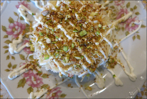 ИНГРЕДИЕНТЫ ПОРЦИИ 4 Помидоры 2 штуки Сыр гауда 80 г Майонез 200 г Филе куриной грудки 1 штука Куриное яйцо 3 штуки Огурцы 1 штука Жареные фисташки 30 штук 1.Нарезать все мелкими кубиками, у помидора удалить семена. 2.Фисташки пожарить и измельчить ножом. 3.Выложить в форму слоями: курица, майонез, огурец, майонез, яйцо, помидоры, сыр. Вытащить форму, сделать паутинку майонезом и посыпать фисташками. Понравился рецепт — поделитесь им с друзьями в социальных сетях! Готовьте вместе с «Едой»!