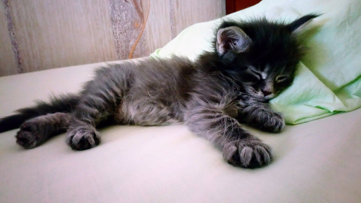 Мой муж всегда очень хотел завести мейн-куна. И однажды, он попросил меня скинуть ему 5 тысяч, но не сказал зачем. Я приехала домой поздно с работы и меня встречал маленький серенький комочек. Мужу сказали при покупке, что ему месяц, но как мы потом осознали ему было и того меньше (он даже толком на ногах не стоял, постоянно заносило заднюю часть😄). Обычно говорят, что мейн-куны добрые и ласковые, но Родомир не совсем вписывался в это описание. Не скажу, что он был злым, но своенравным и ценил личное пространство (если кто-то решил нго потискать то сразу отхватит по мордам). Но он был очень игривым и иногда так сильно заигрывался, что потом сидел с высынутым языком наружу и дышал как собака. В 3 месяца мы заметили, что у него изо рта плохо пахнет (кормили натуралкой) и обнаружили воспаленную десну. По рекомендации врача протирали хлоргексидином и вроде запах пропал. Возраст полового влечения у него пришел достаточно рано, и так как муж не хотел проводить кастрацию, то настал пер