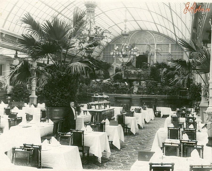 — Мне больше всего нравилось, что любой капитал давал тебе возможность войти в соответствующее место: есть у тебя 50 рублей — пойди к Кюба, выпей рюмочку Мартеля, поглоти десяток устриц, запей бутылочкой Шабли, заешь котлеткой даньон, запей бутылочкой Поммери, заешь гурьевской кашей, запей кофе с Джинжером… Имеешь 10 целковых — иди в «Верну» или в «Малый Ярославец». Обед из пяти блюд с цыпленком в меню — целковый, лучшее шампанское 8 целковых, водка с закуской 2 целковых