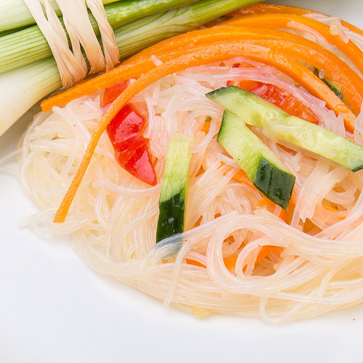 Фунчоза — блюдо азиатской кухни, основным ингредиентом который является стеклянная лапша. Фунчеза идеально подходит для тех кто следит за своей фигурой и не хочет себя сильно ограничивать в еде. На 100 грамм сухого продукта составляет 320 ккал. В вареном виде она теряет четверть калорий и содержит на 100 г уже 80,5 ккал.,когда взрослому человеку в день необходимо 2500ккал.+/-в зависимости от веса,роста и пола. Как и все блюда на основе макаронных изделий, фунчоза универсальна, ведь существует большое количество вариантов, как приготовить фунчозу и сегодня мы предоставим вам один из простых рецептов,с которым справится каждый. Ингредиенты: Лапшу залить кипятком и дать постоять. Все ингредиенты нарезаем тонкой одинакового размера соломкой. На разогретом растительном масле слегка обжариваем лук,морковь(минуту-полторы) Затем кладём болгарский перец,кабачек и курицу и обжариваем дальше до золотистой корочки(все готовится на сильном огне,постоянно помешивая) Кидаем мелко порезанный ч