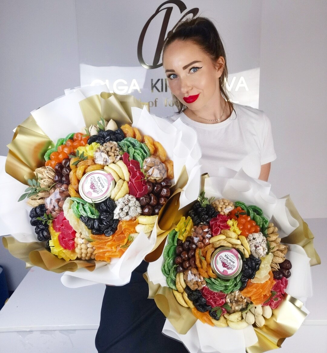 Получать 1000р в час насаживаяЧерпая новые идеи в социальной сети Pinterest, случайно наткнулась на букет из еды. Букеты из мандаринов, яблок и все таком роде. Мне с первого же взгляда была понятна техника исполнения букета, и я решила начать собирать такие букеты. На деле всё оказалось сложнее. Но для человека, умеющего делать что-то своими руками, это не составило труда повторить. Я не стала затягивать с воплощением данной идеи и решила применить новый тренд на практике. Для этого я предложила всем своим знакомым и подписчикам недорого заказать у меня подарки ко Дню матери. Чтобы показать, что можно изготовить, я нашла фото в интернете (так как своих работ ещё не было), создала закрытую беседу ВКонтакте и написала об этом предложении. Сразу же получила около 15 заказов на фруктовые и сухофруктовые букеты. Это послужило толчком к продолжению новой темы. Вручая букеты заказчикам, я делала свои первые фотографии и раздавала напечатанные на скорую руку на принтере визитки с адресом мо