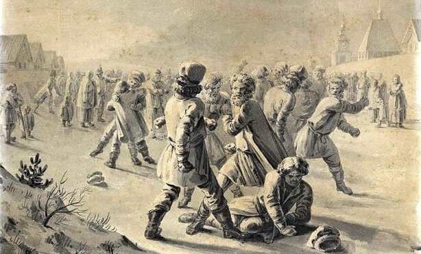 Первые упоминания о кулачном бое в письменных свидетельствах, можно найти в «Повести временных лет» Нестора, которая является величайшим памятником Древней Руси. Там говорится, что покровителем этого вида состязания был Перун. Проведение кулачных боев в обычные дни было не возможным, так как это зрелище было спутником больших праздников. Они организовывались на Масленицу, во время Рождества или Троицы. Существовало несколько видов подобных единоборств. В ходе одного из них, каждый боец стоял строго напротив своего оппонента в линию, среди себе подобных. Это описание вида «стенка на стенку», существовал еще «сцепнойбой». Последний характеризовался наличием нескольких групп дерущихся.