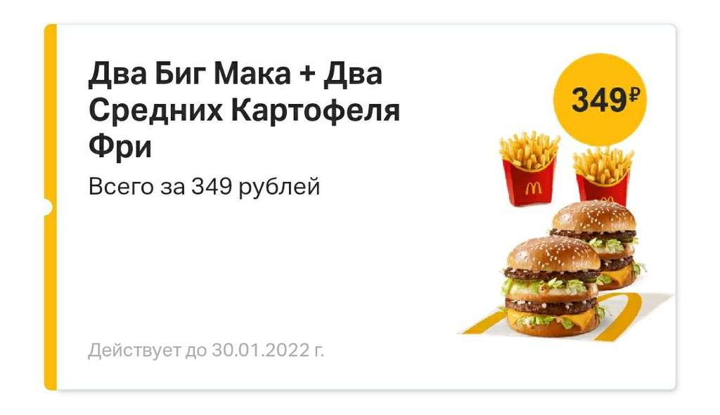 Макдоналдс🔥 2 Биг Мака + 2 Картошки Фри в приложении Акция действует до 30 января❗️