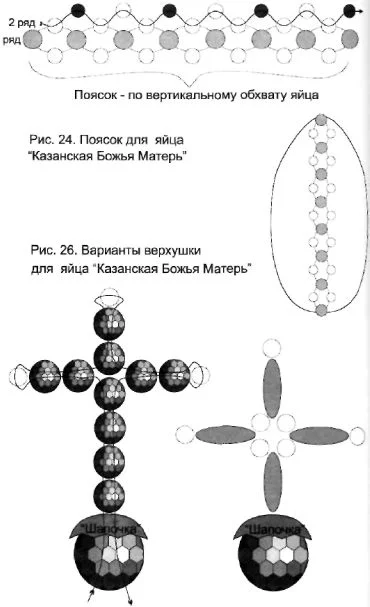 1. Плетется поясок усложненным вариантом низания «в крестик» (рисунок 24), т.е. сначала на двух иголках плетется цепочка одним из многочисленных вариантов чередова
