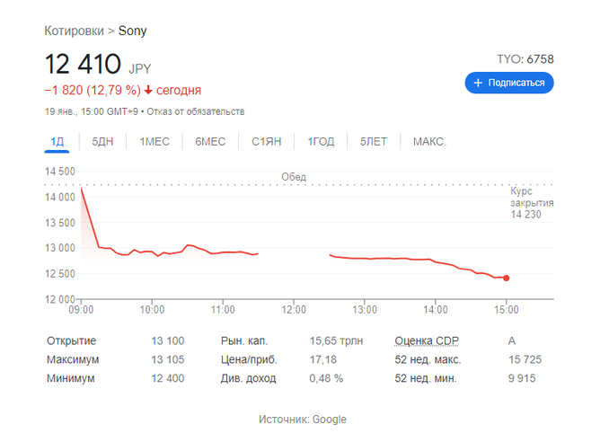 Акции Sony подешевели на 12,8% после того, как Microsoft купила Activision Blizzard