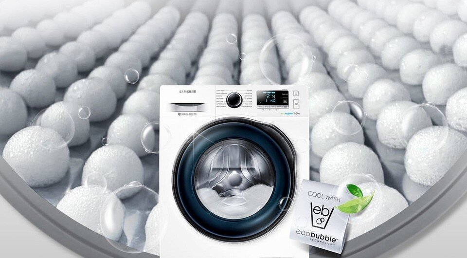 Машинки с технологией пузырьковой стирки — особенные. В них заложен совершенно иной принцип стирки белья в дополнение к обычному. Они имеют встроенный генератор пузырьков воздуха. На воздушно-пузырьковой программе поднимающиеся со дна пузырьки проходят сквозь ткань и удаляют загрязнения.