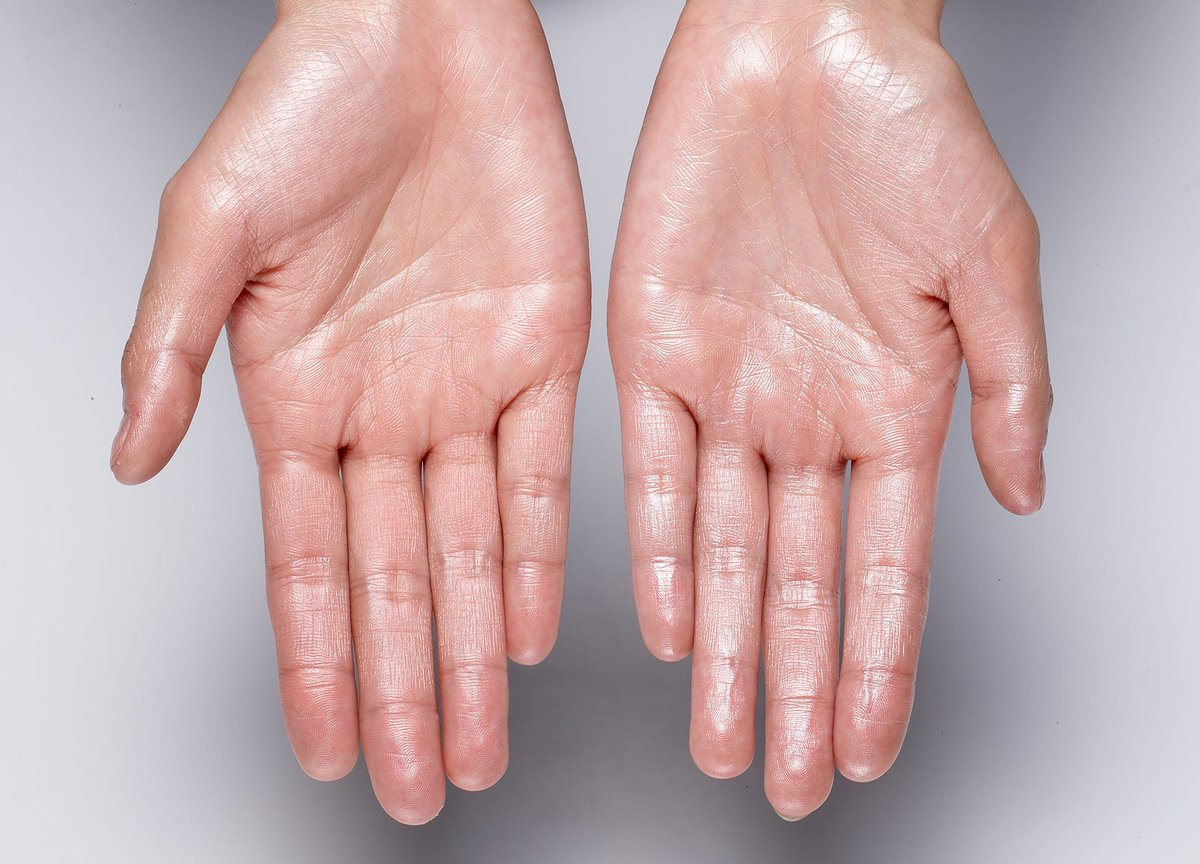 Что заставляет вас потеть без серьезных физических нагрузок и не в жаркую погоду? Возможно, дело в гипергидрозе, заболевании, которое способствует сильному потоотделению. Расскажем, какие симптомы характерны для этого состояния и какие методы лечения существуют. Что такое гипергидроз Это чрезмерно сильное потоотделение, которое возникает время от времени или присутствует постоянно. Гипергидроз является проблемой для многих людей, ведь им приходится постоянно контролировать симптомы. Заболевание можно разделить на несколько разновидностей. · По локализации: Локальный – хроническое заболевание кожи, избыточное потоотделение возникает в подмышечных впадинах, на ладонях, стопах, где сосредоточено много потовых желез. Развивается как правило до 25 лет. Генерализованный — в этом случае наблюдается чрезмерное потоотделение по всей поверхности тела. · По причине Первичный гипергидроз не привязан к другим патологиям и возникает довольно рано – в подростковом возрасте. Вторичный: причиной возн