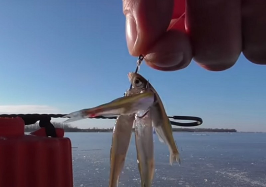 Здравствуйте, уважаемые читатели. Сегодня я хочу предложить вашему вниманию статью, посвящённую ловле хищной рыбы на зимние жерлицы. Казалось, что тут можно рассказать нового. Но изюминкой написанного будет наживка, которую я использую. Я собираюсь ловить на пучок верховок, насаженных на одинарный крючок. Иногда зимой бывает трудно достать нормального живца. Тогда можно пойти с сачком на незамерзающий водоем и наловить много верховок. Известно, что летом на этого живца можно успешно ловить окуня на поплавочную и донную снасти. А как пойдет дело зимой? Я пришел на водоем, пробурил лунки под жерлицы и установил видеокамеры, которые являются моими помощниками при наблюдении за жизнью подводных обитателей. Достал емкость с верховками и приступил к их насаживанию на крючок. Чтобы рыбка надежно держалась на крючке, я прокалываю обе ее губы. На крючок я насаживаю по 5-6 верховок. Получается аппетитный и достаточно объемный пучок. Опустив наживку в лунку, я установил жерлицу и стал наблюдать.