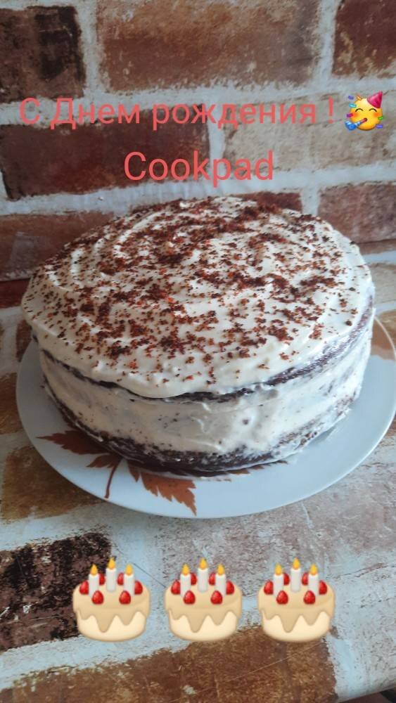 С Днём рождения Cookpad !!! #кукпад4 Ингредиенты: муки, разрыхлителя, сахара, соли, соды, яйца, раст. масла, кефира , красителя (у меня арбузный), какао, Крем , сахарной пудры, сливочного масла, сливочного мягкого сыра Способ приготовления: Для теста : смешать все ингредиенты и испечь два коржа, один больше, разрезать вдоль. Ингредиенты для крема смешать, смазать коржи, дать пропитаться. Убрать в холодильник. Украсить и подавать.
