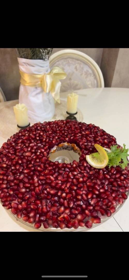 Ингредиенты: говядина, свёклы, моркови, яйца, гранат, майонез Способ приготовления: Отварить говядину, свёклу, морковь и яйца. Натереть на тёрке. Нарезаем говядину. Выкладываем послойно: говядина-> морковь-> яйца-> свёкла-> гранат. Каждый слой смазываем майонезом. Приятного аппетита! Видео рецепт в Инстаграм delicious____food__