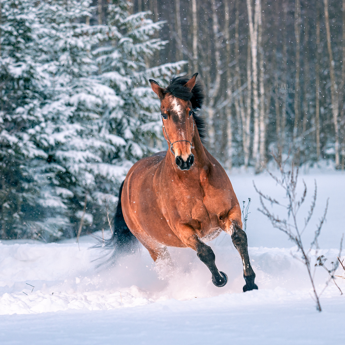 Прошлой зимой «снежных» съёмок с Храбрым у меня так и не получилось(то одно, то другое, переезд между конюшнями, адаптация), хотя снега тоже было по самые уши. В этом году, решила всё-таки не упустить шанс! Конечно очень хотелось поснимать коня где-нибудь на бескрайнем просторе, но поле у нас рядом с оживлённой дорогой и под снегом замёрзшая пашня, так что пошли искать сказочные фоны возле конюшни. Храбрый по началу позировал очень старательно, но потом, когда пошла съёмка в движении - подзавёлся и, увидев, что из конюшни повели коней в левады - свалил к ним знакомиться. Правда быстро вернулся с повинной - ведь у меня осталось заветное ведёрко с вкусняшками 😂 - смотрите в карусели. Далее было решено пойти в большой пастух и дать коню выпустить пар, вот там-то кадры получились 🔥🔥🔥 Но, не всё сразу 😉 Короче, пока нет сильных морозов и оттепелей, снег мягкий и пушистый - не теряйте времени, и бегом в сугробы за эпичными конными кадрами! Очень хотите, но не знаете «где, куда и с кем