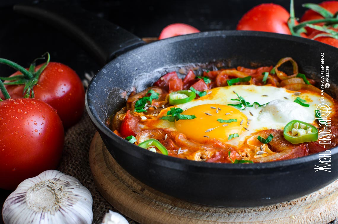 Здравствуйте дорогие читатели и подписчики канала: «Галина А.»! Ядетства я обожала яичницу с помидорами… Не знаю почему, но такую яичницу дома называли яичницей по-польски. Уже позже, когда я только узнала, что существует израильская яичница шакшука, мне сразу захотелось ее попробовать, потому что как минимум — она с помидорами! Но стоило приготовить ее раз… Стоило приготовить ее раз… При этом скажу так: на тот момент я терпеть не могла ни кориандр, ни зиру. Но интерес взял верх, и вуаля! +1 в списке кулинарной любви. На фото к статье шакшука формата глазуньи. Это, безусловно, красиво. И, безусловно, понравится тем, кто любит глазунью. Если же вы не из их числа, то готовьте шакшуку под с крышкой, чтобы весь белок окреп. Именно так я и делаю в видео. Яичница шакшука: видео Яичница шакшука Выход 1 порц. Ингредиенты Приготовление Лук очистите, помойте и нарежьте кольцами. . Помидор разрежьте напополам, а затем небольшими кусочками. Так как я готовлю пока не в сезон, использую 1 свежий и т