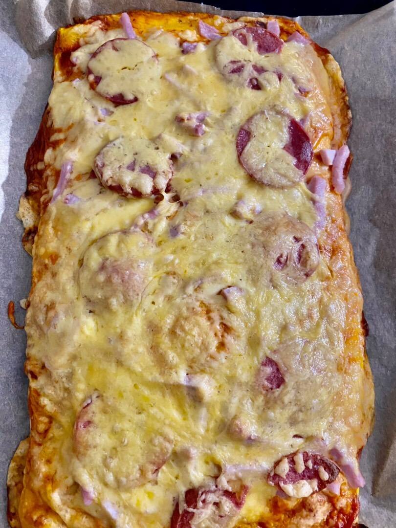 Ингредиенты: готового слоёно-дрожжевого теста, Кетчуп, Майонез, Колбаса, Балык, Сыр Способ приготовления: Тесто (у меня Титто 1 уп) размораживаем, я поделила на 2 части, получилось 2 пиццы. Смазала кетчупом с майонезом, выложила начинку, у вас она может быть совершенно Любая. Сверху обильно посыпала сыром 🧀 Разогреваю духовку 200 градусов. И отправляю пиццу минут на 20. И вкусняшка готова )