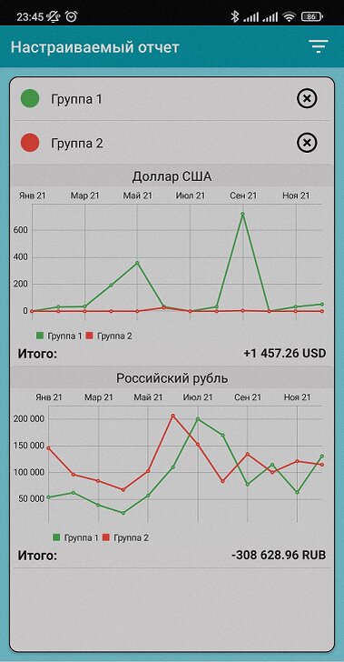 Красная линия — расходы, сюда не включены траты на фондовом рынке и покупка валюты. Зеленая линия — пассивные доходы: купоны, дивиденды, проценты по накопительным счетам, кэшбэк и прочее По итогу за 2021 год, наши семейные расходы превысили пассивный доход на 200 тыс. руб. (=308528,96 - $1457,26* 74,3). Пассивный доход в 2021 году состоял из следующих статей: Дивиденды: 673 102 руб. ($1487 + 562 618 руб.) Купоны: 314 642 руб. ЗПИФ недвижимости: 203 643 руб. (196 019 - Активо, 7 624 - ПНК) Кэшбэк: 17 326 руб. Процент по вкладу: 2 871 руб. Итого: 1 211 584 руб. (Справочно, за 2020 год. пассивный доход составил 1 055 000 руб.) Расходы за 2021 год составили 1 411 960 руб. (Справочно, за 2020 год. расходы составили 1 060 000 руб.) Самые крупные категории трат: Продукты (питание, бытовая химия и т.п.) - 386 тыс. руб. Авто (бензин, страховки, ремонт) - 207 тыс. руб. Семья (Доп. образование детей, игры/игрушки) - 152 тыс. руб. Услуги (ЖКХ, интернет, сотовая связь) - 142 тыс. руб. Отдых (З