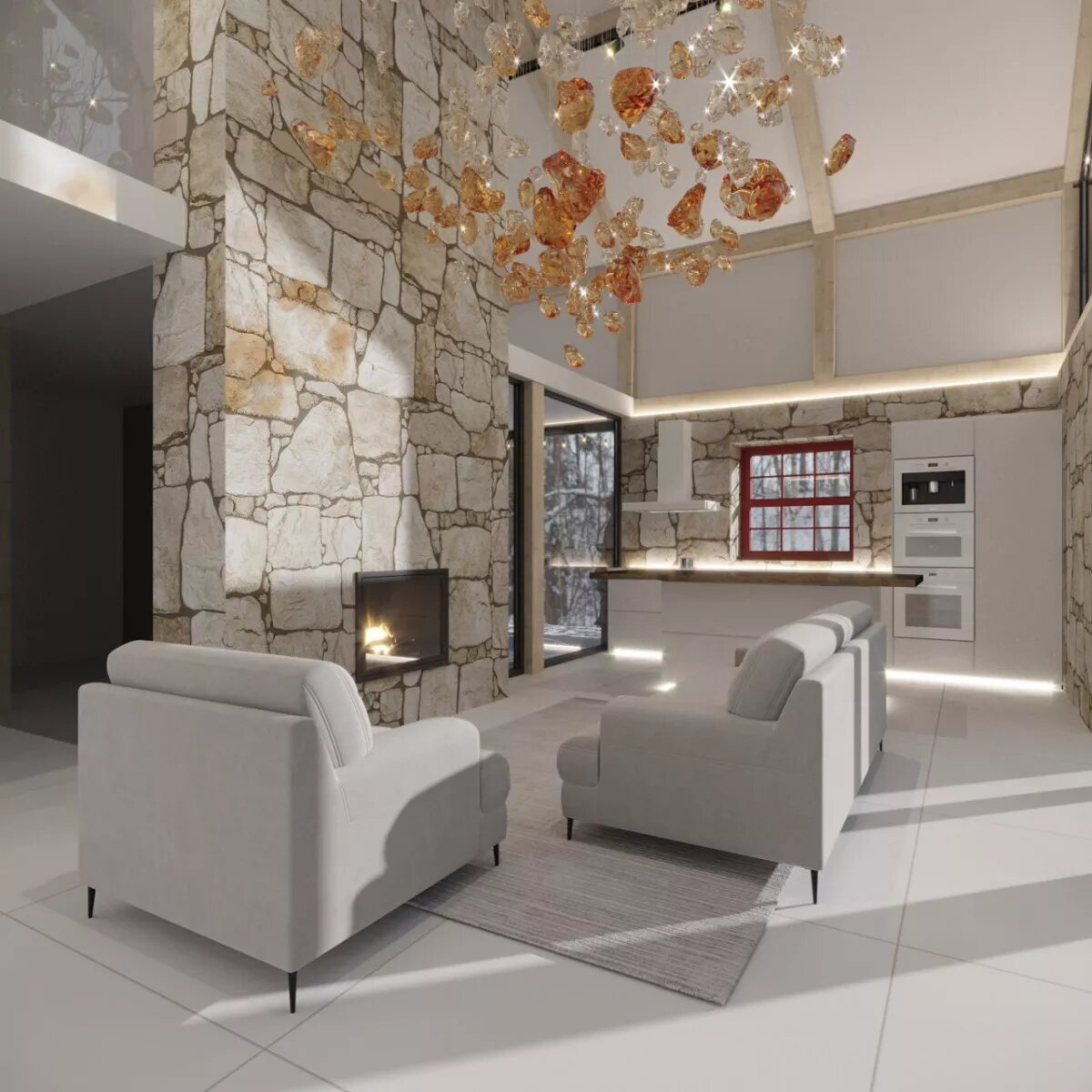 Представленное в нашем новом проекте бюджетное решение от архитектора Марии Грин поможет вам построить и отделать загородный дом быстро и недорого. Сочетание черного металла и песчаника сделает ваш будущий дом с фахверковой конструкцией в стиле барнхаус необыкновенно выразительным и харизматичным. Быстровозводимый каркасный дом Дома в стиле барнхаус (или амбар) приобрели огромную популярность сегодня, ведь это простейшие избушки, но только современные и просторные. Основу составляет тот самый фахверк (сквозная каркасная конструкция). Дом собирается быстро на месте из готовых элементов за месяц. Отличительной особенностью этого проекта является комбинированная конструкция. Три стены выполнены из блока и облицованы натуральным камнем песчаником. Преимущества фахтверкового дома 1. Недорого Строительство такого дома не только сэкономит время, но и деньги. Оно обойдется владельцам в среднем в 3 млн. рублей вместе с отделкой. 2. Экологично и надежно В декоре этого барнхауса использованы кр