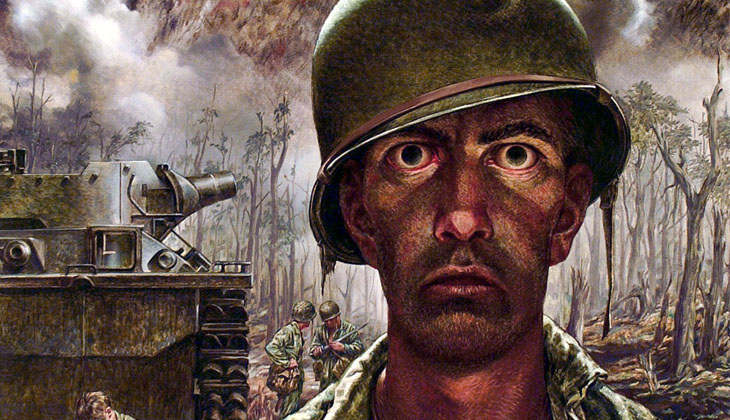 Началось все с картины, написанной Томасом Ли в 1944 году. Это портрет неизвестного морпеха во время битвы за Пелелиу. Автор оставил нам следующий комментарий: