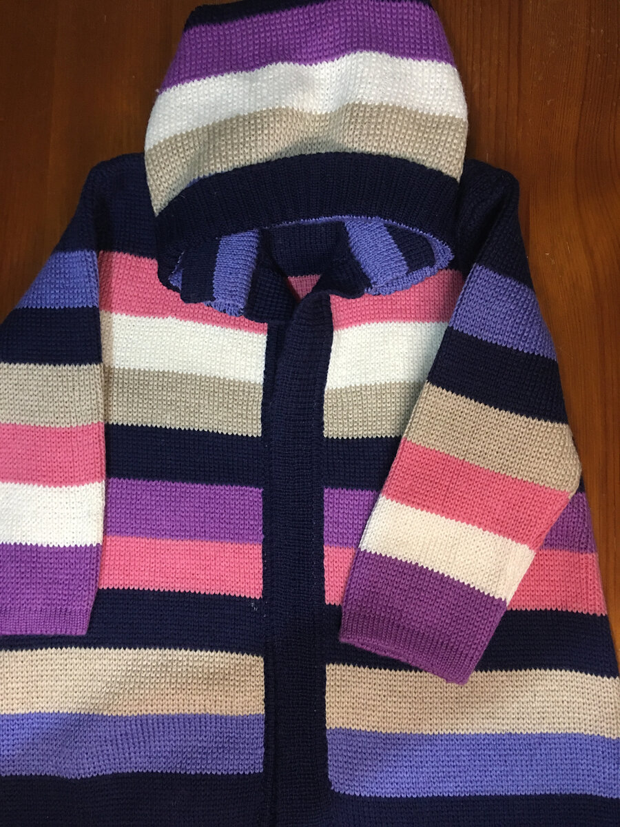 Описание к детскому кардигану. Смотрите ссылку. Еще одна ссылка непосредственно показ на машине Этот кардиган связан на вязальной машине, но его можно связать и спицами. Для удобства вязания я делаю описание этой модели. Детские вещи -это моя любимая тема вязания! Содержание статьи будет по тем пунктам, где вы, просматривая видеоматериал, не запомните порядок убавления или прибавления. Это касается вязания оката рукава, вязание капюшона, а также убавления петель от низа кардигана до проймы рукава. Здесь я имею в виду, что кардиган слегка расклешенный к низу. Попутно скажу о пряже: -объем нити в 100 граммах 1600 метров в три сложения нитей, плотность вязания верхняя фантура 4/и нижняя фантура 4. Состав пряжи 70% шерсть и 30% акрил. Пряжа семеновская Этот состав пряжи отличается своей практичностью, а именно: -изделие держит форму и не образует ненужных воланов. Это за счет небольшого % акрила. -и в то же время 70% шерсти и небольшой % акрила очень хорошо передает тепло. В дополнение