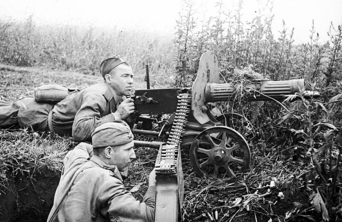 Прибыли в старые бараки, возле небольшого завода, нам сказали, что жить и учиться будем здесь, а поэтому мы сами должны всё привести в порядок, обустроить свой быт, для самих себя постараться. Две недели старались, первым делом печь хорошую сложили, нашлись мастера-печники, заделали дыры в крыше, утеплили, чем нашлось стены, нары соорудили, место отхожее построили – это тоже важно. Одели нас в поношенную красноармейскую форму, тёплого белья не было, поэтому разрешили под форму надевать гражданское, на улице уже было холодно. Разделили на двойки, мне в напарники Колька достался, оказалось, мы в одном районе жили, я в деревне, а он был из села, начались занятия. Большую их часть, мы разбирали и собирали пулемёт «Максим», когда выходили в поле, то копали пулемётные ячейки. Эти земляные работы были для нас самым трудным, командир взвода всегда заставлял копать в новом месте, говорил, что за это мы его ещё благодарить будем. Командовал моим взводом старшина, чего-то у него с рукой было, но он очень надеялся, что когда мы будем выпускаться, то и его на фронт отправят, не вышло, не отправили.