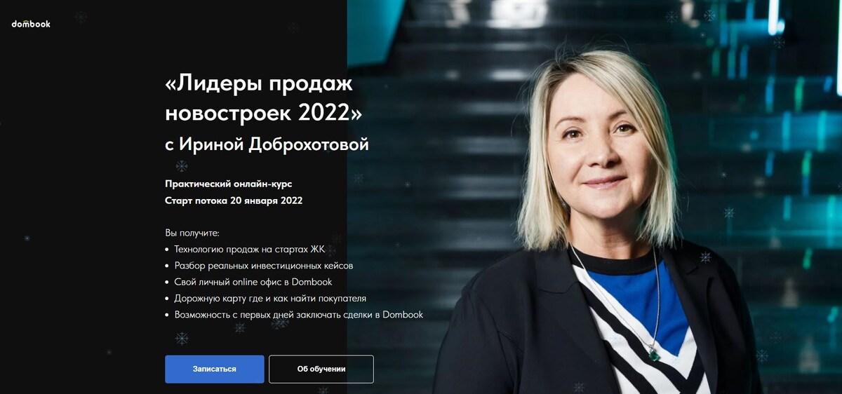 Dombook запустил школу для риелторов и инвесторов Ирина Доброхотова, создатель одной из первых в России кадровых школ для риелторов, запустила образовательную программу «Лидеры продаж новостроек 2022». В течение пяти недель ведущие эксперты рынка недвижимости из Dombook и «БЕСТ-Новострой» научат всех желающих эффективным технологиям продаж, раскроют инвестиционные стратегии, научат работе на маркетплейсах недвижимости, откроют доступ к pre-sales новостроек Москвы и помогут заключить первые сделки. Новый образовательный курс «Лидеры продаж новостроек 2022» ориентирован на широкую аудиторию участников рынка недвижимости. Это и новички, которые хотели бы попробовать себя в продажах новостроек, и риелторы, которые работали ранее только с арендой и вторичной недвижимостью и хотели бы выйти в новые сегменты и расширить свою клиентскую аудиторию. Курс будет полезен и практикующим риелторам с рынка новостроек, которые хотят «прокачать» свой навык продаж и инвестиционным консультантам, которые