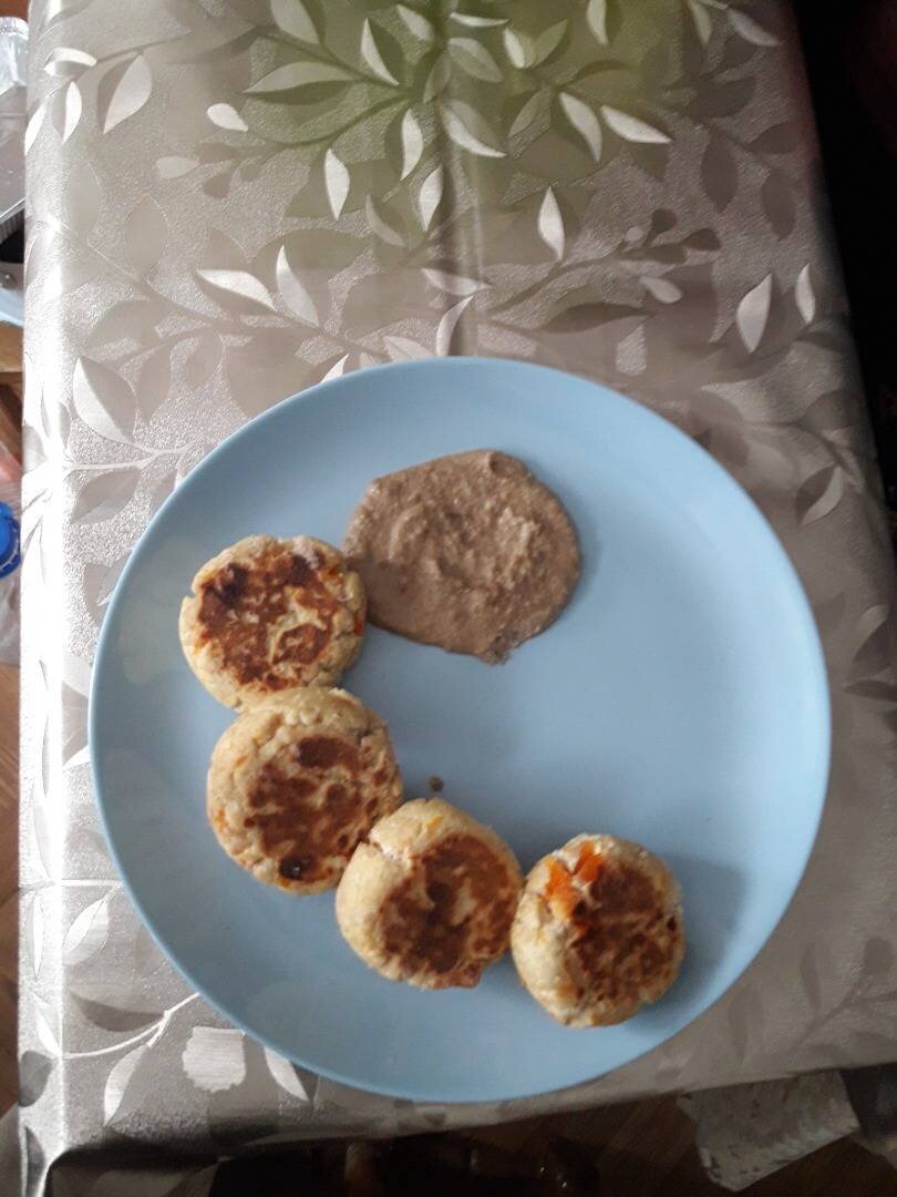 Обов'язково запечіть їх в духовці!!!неймовірна текстура і смак Ингредиенты: Творог пастоподібний , Жовток, Борошно +5 г на обвалку, Курага , Підсолоджувач , Соус:, Халва , Вода Способ приготовления: Курагу дрібно нарізати, все змішати і дати відстоятись хоча б 20 хвилин, я заготовки робила ввечері, а зранку уже формувала. Сформувати кульки, за допомогою ножа з великим лезом сформувати сирники, готувати з 2 х сторін до золотистого кольору, а потім на 10 хвилин запекти в духовці. Для соусу: халву змішати з водою і варити до загустіння на маленькому вогні