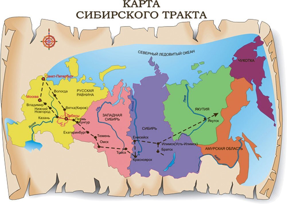 В 1730 году началась работа по прокладке Сибирского тракта, на тот момент самой длинной дороги в мире. Главный Сибирский почтовый тракт, Большой Сибирский тракт, Большой тракт, Великий тракт, Московский тракт, Московско-Иркутский тракт, Московско-Сибирский тракт, Осьмая государственная дорога и Государева дорога,- все это названия одного и того же пути, надолго ставшего важным узлом на карте Российской империи. Маршрут дал огромный толчок в освоении Сибири, позволил выйти на новые торговые пути и заметно упростил передвижения от европейских регионов страны в азиатские. Однако воспоминания об этом тракте были чаще всего наполнено горестью, так как именно по нему этапировали каторжан. Сегодня мы поговорим об этом подробнее, но постараемся затронуть и положительное влияние Сибирского тракта на российскую историю и экономику. Московско-Сибирский шел из Москвы в Тюмень и Тобольск через Нижний Новгород, Казань, Кунгур и Екатеринбург, то есть охватывал сразу несколько важнейших в государстве