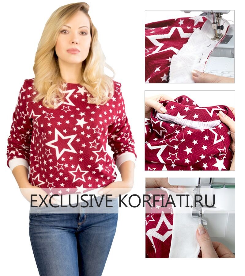 Стачивать детали трикотажного изделия рекомендуется четырех-ниточным оверлочным швом, а выполнять отделочные швы — на плоскошовной машине. Перед началом работы рекомендуем изучить все возможности оверлока и плоскошовной машины, которые вам обязательно пригодятся в работе.