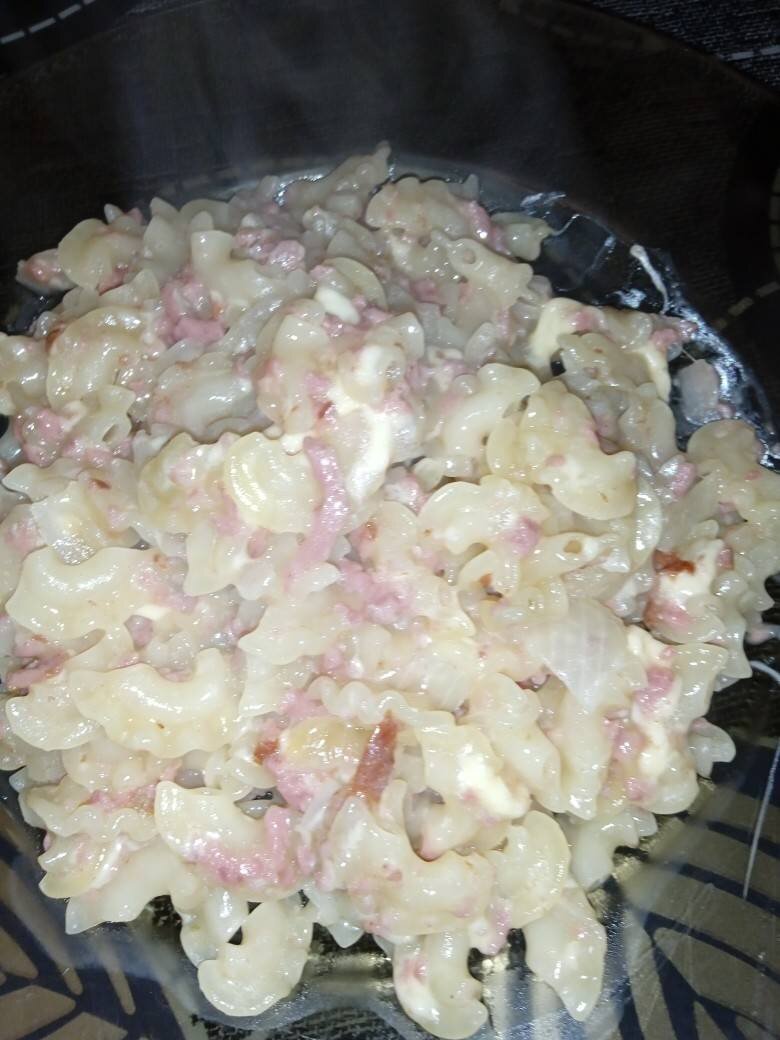 Быстро и вкусно Ингредиенты: макароны, колбаса подукопченая, сыр, лук, масло растительное, соль, вода Способ приготовления: Нарезать лук обжарить, добавить натертую колбасу, обжарить, добавить макароны, обжарить минут пять помешивая. Добавить воду, хорошо перемешать и довести до готовности под крышкой, добавить тертый сыр, перемешать.