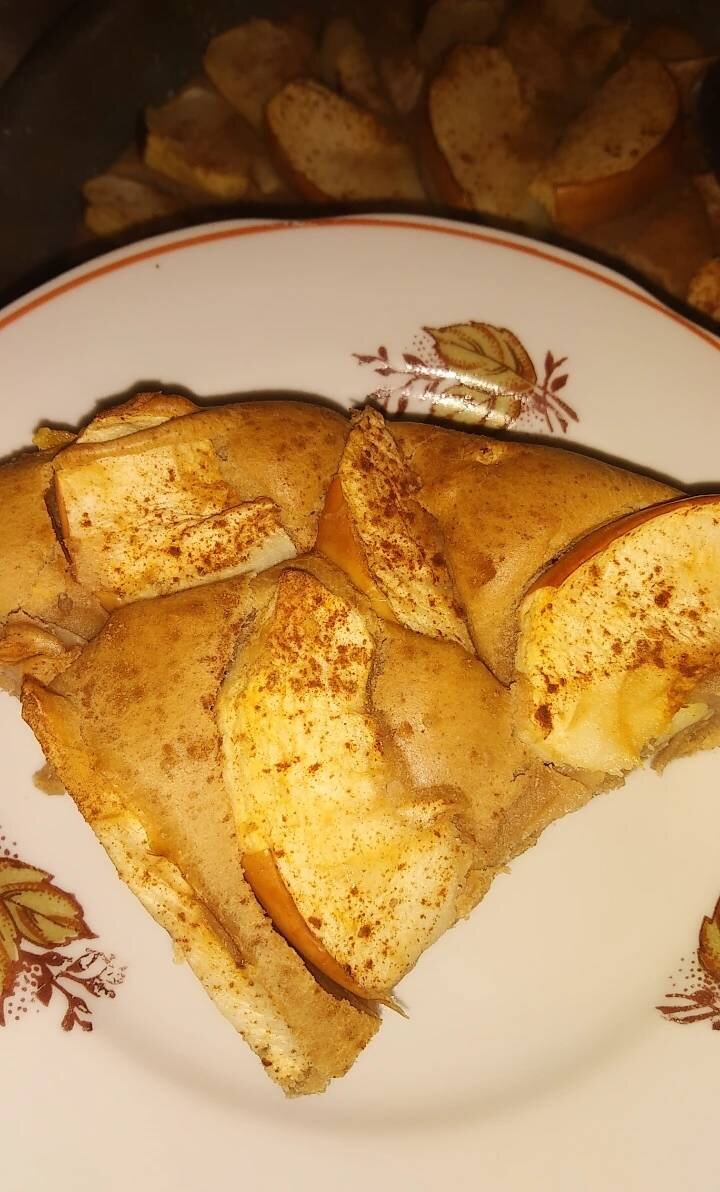 #канікули Ингредиенты: гречневой муки, пшеничной муки, яйца, яблоки, сметаны, стевии, разрыхлителя для теста, корицы, какао, кураги, Сливочное масло для смазывания формы Способ приготовления: Просеять 2 вида муки через сито. Добавить яйца,сметану,стевию, разрыхлитель и какао. Все перемешать хорошо. Замочить курагу горячей водой,помыть и нарезать небольшими кусочками. Добавить в тесто. Помыть яблоки,почистить и порезать дольками. Намазать форму сливочным маслом и выложить тесто. Украсить тесто яблоками и присыпать корицей. Выпекать в духовке 30 минут при 180 гр.