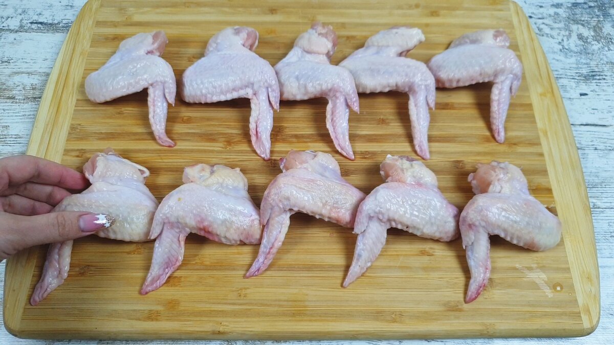 Как готовить: Берем 10 куриных крылышек. Разрезаем крылышки по суставам. Кончики откладываем. Остальные части складываем в миску. Для маринада смешиваем соевый соус с томатным соусом или кетчупом. Добавляем по чайной ложке соли и паприки, немного черного перца и перемешиваем Луковицу нарезаем на полукольца. Заливаем куриные крылышки маринадом и перемешиваем с нарезанным луком. Накрываем пищевой пленкой и отправляем в холодильник на 2 часа. Нанизывать крылышки мы будем на бамбуковые палочки. Чтобы палочки не подгорели в духовке, необходимо их замочить в воде минимум на полчаса. Замаринованные крылышки достаем из холодильника и нанизываем на шпажки. У меня поместилось по 4 части на каждой палочке. Выкладываем шашлычки на противень, застеленный пергаментной бумагой. Смазываем оставшимся маринадом и отправляем в духовку на 45-50 минут. В процессе запекания вынимаем противень из духовки, переворачиваем шашлычки и смазываем маринадом вытекшим соком. Пока крылышки запекаются, замаринуем лук.