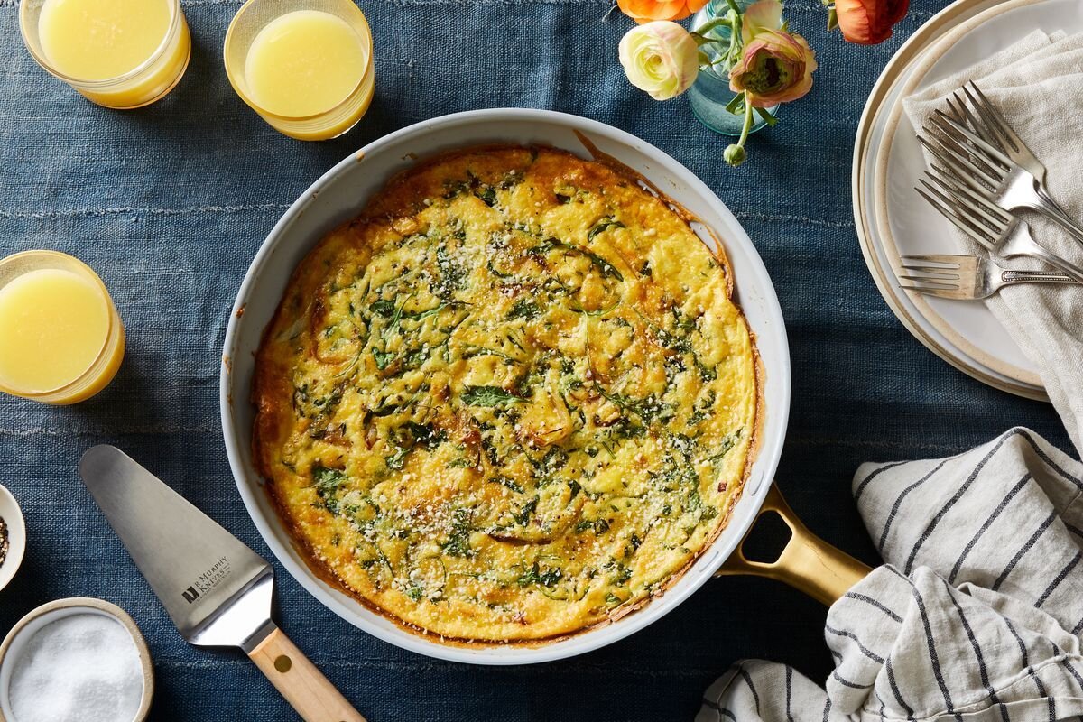 - Перекладываем фриттату на блюдо и подаём горячей.