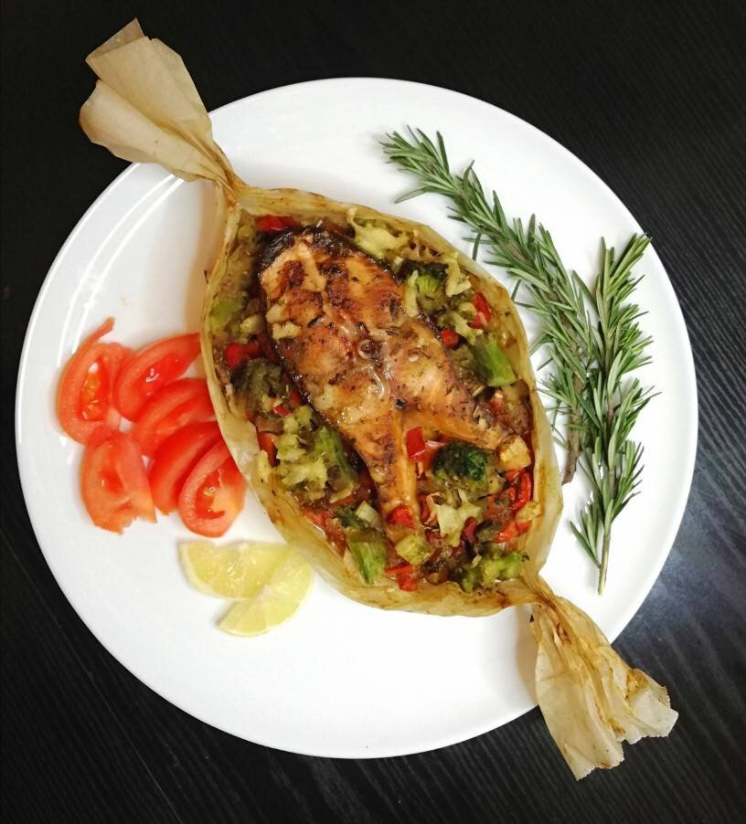 Ну очень просто, вкусно, а выглядит как в ресторане. #кукпад4 Ингредиенты: Стейки форели / сёмги, Овощи: красный перец, помидор, брокколи, (к рыбе подходят любые овощи), Сыр, Зелень укропа, Маринад:, Соевый соус, Горчица, Любимые специи (у меня прованские травы), Соль, перец Способ приготовления: Смешать все ингредиенты для маринада. Замариновать в нем стейки не менее часа в холодильнике. Начинка: овощи сыр нарезать мелкими кубиками. Смешать. Рыбу положить на пергамент, края зафиксировать степлером, чтобы получилась лодочка. В середину рыбы положить начинку. Полить овощи оставшимся маринадом. Запекать при 180° в течение 35 мин.
