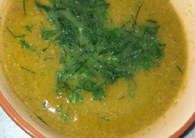 - Всю массу выкладываем в блендер, измельчаем до состояния пюре. Супчик готов. Если получается густо, можно добавить воду.