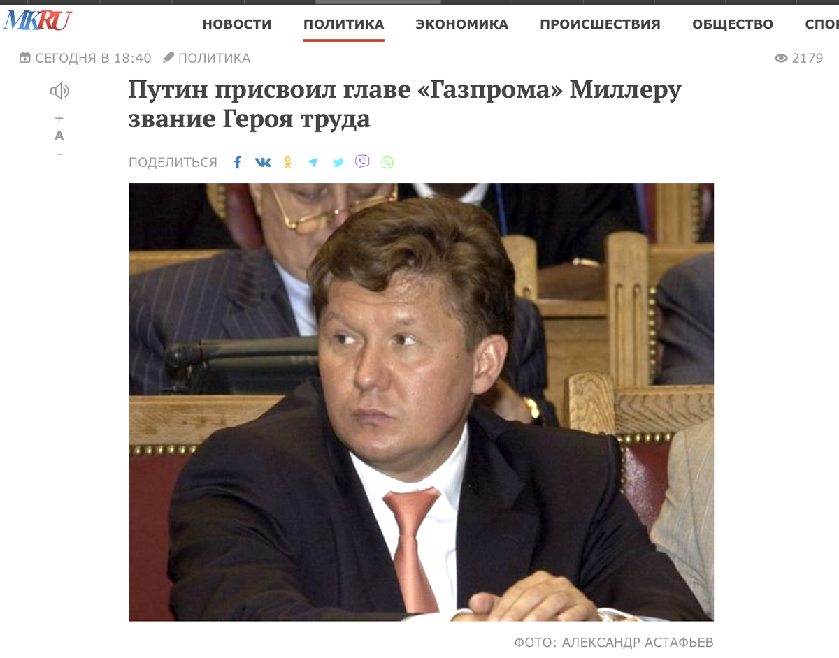 Порадуемся за Председателя правления ПАО «Газпром» Алексея Миллера которому сегодня присвоено звание Героя труда.
