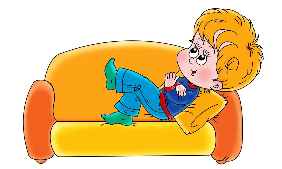 Бабушка. Комната. Петя лежит на диване. Витя сидит за столом.