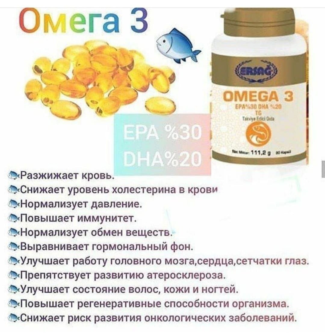 1.Сухая кожа точка для того, чтобы кожа сохраняла влагу и оставалась молодой, ей необходимо омега-3 жиры. 2. Безжизненные волосы 3. Ломкие ногти. 4 Плохой сон. 5. Проблемы с концентрацией. 6.Быстрая утомляемость. 7.Больные суставы. Польза рыбьего жира для женского здоровья: 🔹Снижает риск возникновения рака молочной железы. 🔹Налаживает работу мочеполовой системы 🔹Предотвращает риск возникновения тромбов. 🔹Нормализует работу кровеносной системы. ОМЕГА-3: ☑️ улучшает зрение и память: ☑️ укрепляет защитные силы ; ☑️ снижает кровяное давление: ☑️ улучшает подвижность суставов: ☑️ нормализует обмен веществ и работу ☑️ желудочно-кишечного тракта: ☑️ способствует регенерации клеток: ☑️ снижает риск развития заболеваний сердца: ☑️даёт хорошее настроение: ☑️ препятствует раннему старению: ☑️ питает волосы: кожу и ногти ☑️ способствует активному сжиганию жиров. 🟣СПОСОБ ПРИМЕНЕНИЯ По 1 капсуле 3 раз в день для лечения. Качество отличное 👍 испробовано на себе . Принимаю за
