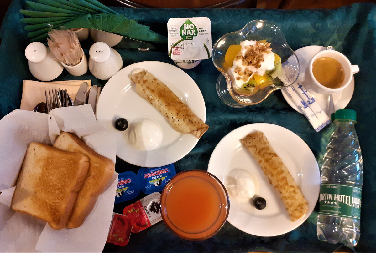 Я неоднократно упоминала о том, один из важнейших критериев при выборе и последующей оценке отеля для меня — качество завтрака. Для меня это важно. Да-да, я знаю, что почти в любом городе можно выйти из отеля и пойти завтракать в любое кафе, но такой вариант мне нравится куда меньше: я предпочитаю наесться на полдня включённым в стоимость номера брэкфастом и получить безлимитный допуск к кофемашине (тем более, что обычно я в путешествиях не трачу время на обед, а только ужинаю). Но, когда я читаю отзывы об отелях, мой взгляд часто спотыкается на формулировке претензии: "Завтраки неплохие, но каждый день абсолютно одинаковые". Каждый раз, когда я читаю что-то подобное, у меня возникает вопрос: а чего, собственно, люди ждут? Дьявол, конечно, в деталях и нюансах.:) Помню, довольно давно, когда я ещё училась в школе, мы с бабушкой и младшим братом отдыхали в подмосковном пансионате — как положено, 14 дней (если не 21!). Питание там было организовано по предзаказу: накануне, значит-с, став