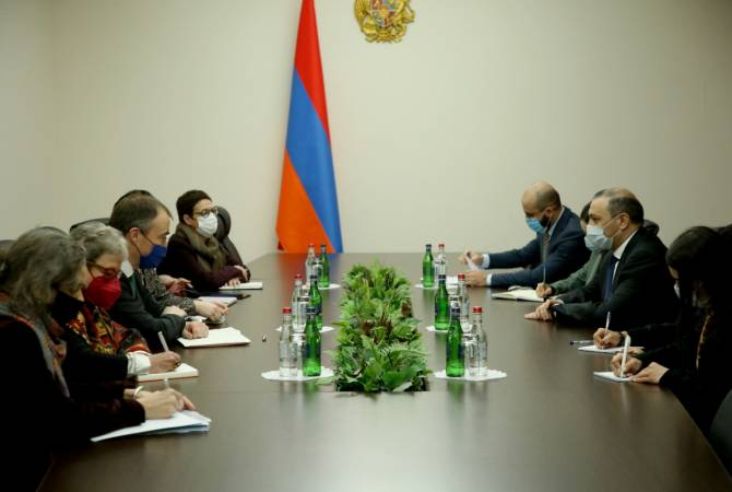 Секретарь Совета безопасности Армении Армен Григорян 21 января встретился с делегацией Европейского Союза и Совета Европейского Союза. Как сообщили «Арменпресс» в Совете безопасности Армении, в составе делегации были советник Кабинета президента Франции по вопросам континентальной Европы и Турции Изабель Дюмон, специальный представитель ЕС по вопросам Южного Кавказа Тойво Клаар, посол ЕС по вопросам Восточного партнерства Брис Роквой, специальный советник председателя Европейского совета Магдалена Гроно, а также представитель ЕС в Армении Андреа Викторин и посол Франции в Армении Анн Луйо. Стороны выразили удовлетворение активным сотрудничеством Армения-ЕС. Секретарь Совета безопасности подчеркнул готовность Армении продолжать сотрудничество с ЕС в процессе демократизации Армении и обеспечения безопасности в регионе. В ходе встречи стороны коснулись ситуации вокруг армяно-азербайджанской границы. В этом контексте было подчеркнуто, что процесс делимитации и демаркации армяно-азербайджа