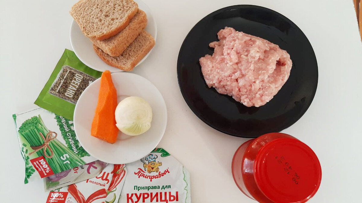 Курино-томатные котлеты—бюджетный вариант для всей семьи. На их приготовление я потратила не более 150 рублей. Итак, нам понадобятся для котлет: Для соуса: Две столовые ложки томатной пасты растворяем в стакане воды. Туда же отправляем специи и травы. Хлеб крошим на мелкие куски, заливаем его томатной смесью. Лук и морковь трем на терке и отправляем обжариваться на 5 минут в сковородку. Перемешиваем обжаренные лук, морковь, томатно-хлебную смесь и куриный фарш в кастрюле. Оставляем минут на 15, чтобы все ингредиенты подружились и пропитались вкусом и ароматом друг друга. Из готового фарша формируем котлеты, обваливаем их слегка в муке для того, чтобы при жарке получилась красивая румяная корочка. Из заявленного количества ингредиентов у меня получилось девять немаленьких котлет. Обжариваем каждую котлету с двух сторон до румяной корочки. Собираем все котлеты на противень, заливаем их томатным соусом (стакан воды и 2 столовые ложки томатной пасты) и отправляем запекаться в духовку н