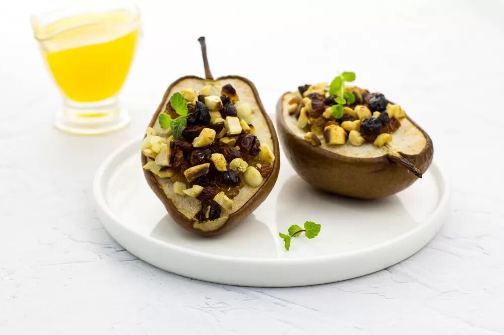 Как приготовить груши, запеченные с орехами и изюмом