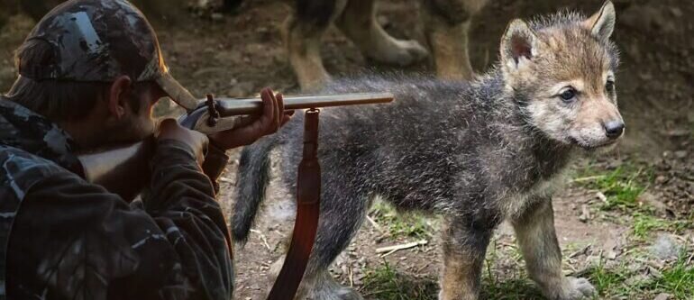 Охотник решил взять волчонка к себе, он был очень красив и напоминал щенка овчарки. Маленький волк царапался и кусался, но все же его запихнули в рюкзак.