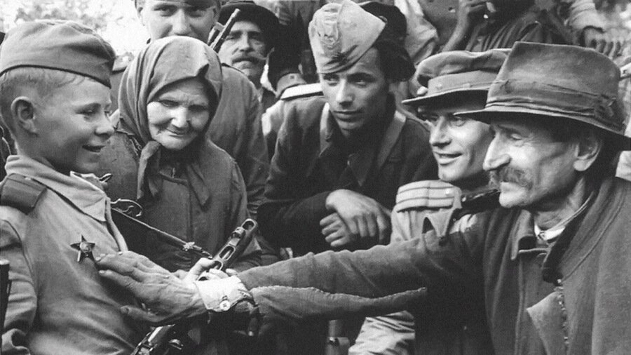 На ней командир Василий Романенко рассказывает сербам о славных делах своего подчиненного и «сына полка», провоевавшего уже два года и получившего звание ефрейтора. Грудь мальчика украшает новенький орден Красной Звезды.
