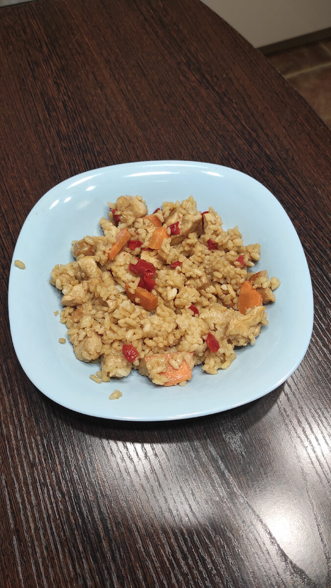 Всем привет. Сегодня я вам расскажу как делал крайне простое, но вкусное блюдо. На работе я распробовал курицу в соусе терияки и проникся этим сочетанием. Решил приготовить что-нибудь с ней. Остановился на чем-то типа вока с рисом. Соус терияки взял готовый, решил что самому его делать я пока не готов. Так же взял сладкий перец, морковь и рис. Курицу пожарил, добавил в нее нарезанную морковь и перец. Немного все это вместе пожарил и залил соусом терияки. Потом засыпал отваренным рисом, все перемешал и дал настояться. Все получилось очень вкусным, хотя овощи, наверное, стоит обжарить отдельно или раньше добавлять в курицу Думаю может мало ингредиентов добавил, попробовать в будущем усложнить, добавить что-нибудь ещё. Если есть варианты, то приглашаю в комментарии.