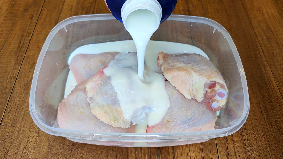 Никогда бы не подумала, что самый обычный кефир может настолько удачно подчеркнуть вкус курицы. Это очень быстрый и легкий в приготовлении рецепт. Самое главное, что у плиты стоять совершенно не требуется. Здравствуйте, дорогие зрители! Спасибо, что заглянули на мой кулинарный канал! Этот рецепт идеален для тех, кто не хочется заморачиваться с приготовлением ужина после работы. Все максимально просто и быстро! Для приготовления данного блюда можно использовать любые части курицы. Сегодня я решила использовать бедра. Давайте скорее перейдем к процессу приготовления! Переходим к приготовлению:😉 1.Куриные бедра мою и выкладываю в глубокую емкость. Затем мелко режу репчатый лук. 2.Лук добавляю к бедрам. Затем добавляю соль, черный молотый перец, сладкую паприку и измельченный чеснок. Все перемешиваю. 3.Затем заливаю курицу кефиром. Перемешиваю содержимое блюда и оставляю курицу промариноваться на 20-30 минут. По истечении получаса достаю бедра из кефира. 4.Тем временем я очищаю картофел