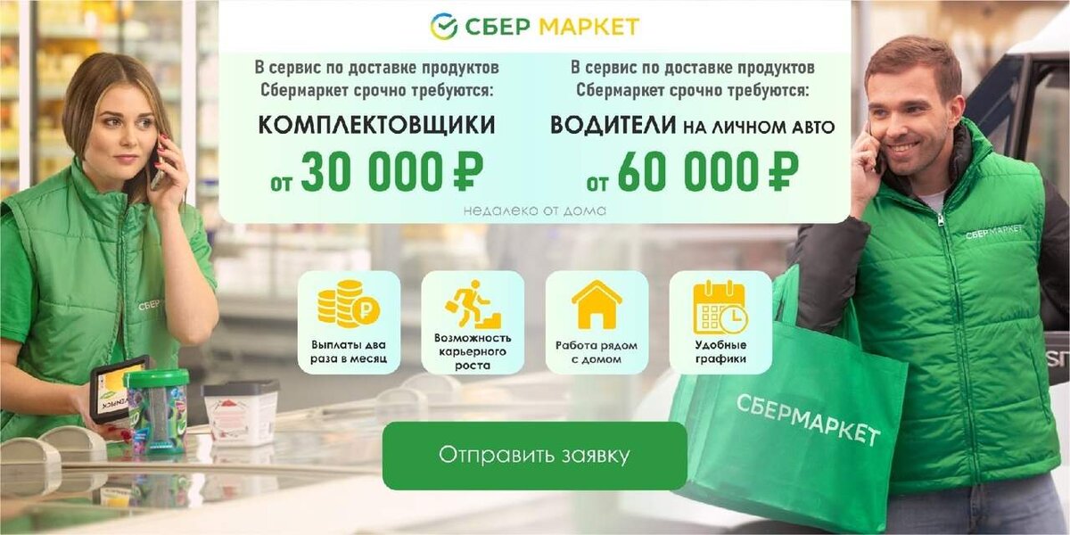 Всем привет! Сложно встретить сейчас человека, который не слышал бы про компанию Сбермаркет (вероятно это должен быть какой-то отшельник без телевизора, радио и интернета). Именно с этой компанией я сотрудничал последние 2 года и хотел бы поделиться с вами своим опытом. За это время я прошел путь от обычного сборщика заказов до наставника. Сразу сделаю оговорку, что все мною написанное относится только к моему опыту и описывают лишь то, что происходило в период моего сотрудничества с компанией. На момент прочтения условия, тарифы и пр. могли уже поменяться (хотя скорее всего главное осталось на том же уровне :) ). Но хватит воды - приступим! Все наверняка видели подобные рекламные баннеры в интернете, предлагающие устроиться в Сбермаркет. Условия заманчивые - выплаты еженедельно; гибкий график, который можно подбирать под себя; место работы - рядом с домом; карьерный рост и многое другое. И при этом никаких навыков, опыта работы или образования (берут якобы даже школьников), а зарплат