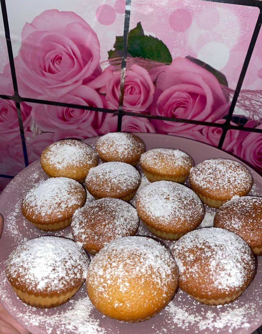 Ингредиенты: молоко, мука, Сахар , Яйца, Гашеная сода , Растительное масло Способ приготовления: Яйца, сахар, молоко перемешиваем венчиком. Добавляем ванилин, соду, муку, затем масло, хорошо перемешиваем. Разливаем тесто по формочкам, где-то чуть больше половины. Выпекаем при 180 градусов минут 20.