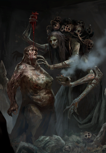 Дочери видели, что край умирает, и взяли на себя роль его спасительниц. Весной, в ночь жертвоприношения они убили Мать, и похоронили ее в трясине. Кровь же ее, растекшуюся по всей земле, впитали корни дуба, что стоит на вершине Ард Кербин, и с тех