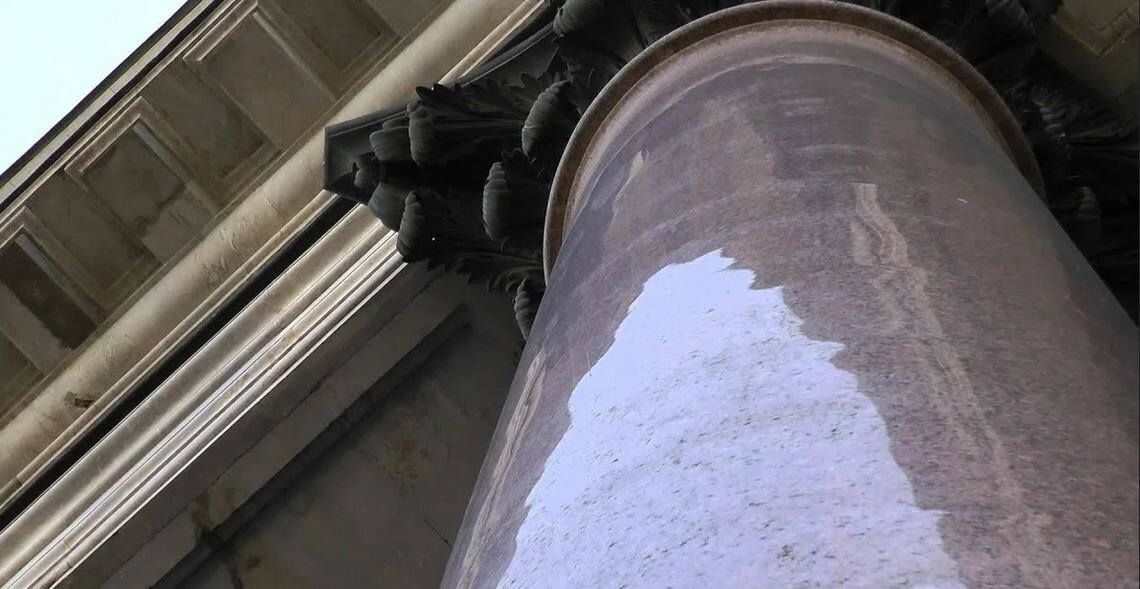 Фотографии колонн портиков Исаакиевского собора, сделанные в 1890-х годах во время работ по выправлении крена, демонстрируют как отсутствие внутренних пустот, так и отсутствие "облицовки".