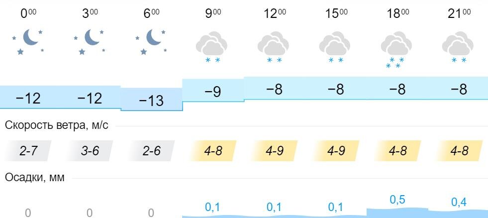 Синоптики рассказали, какая погода ожидает жителей Кировской области в субботу, 22 января. Днем температура воздуха составит -8°С. Утром и вечером – от -8°С до -13°С. Весь день ожидается пасмурная погода и снег. Скорость ветра в течение суток составит 2-9 м/с.