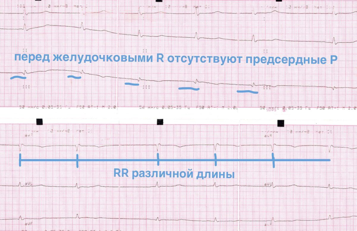 Чтобы отличить фибрилляцию предсердий (ФП) от синусового ритма нужно найти одновременно 2 признака: Если присутствует только 1 признак, то это не ФП, а что-то другое, например: Дополнительные признаки ЭКГ при фибрилляции предсердий: Причина таких изменений ЭКГ: Затрудняет диагностику фибрилляции предсердий: Хотите потренироваться отличать фибрилляцию предсердий от синусового ритм на пленках ЭКГ? Разобраться подробнее с дифференциальной диагностикой аритмий? Переходите по ссылке на мой учебный сайт. Тренинг "как отличить фибрилляцию предсердий на ЭКГ"